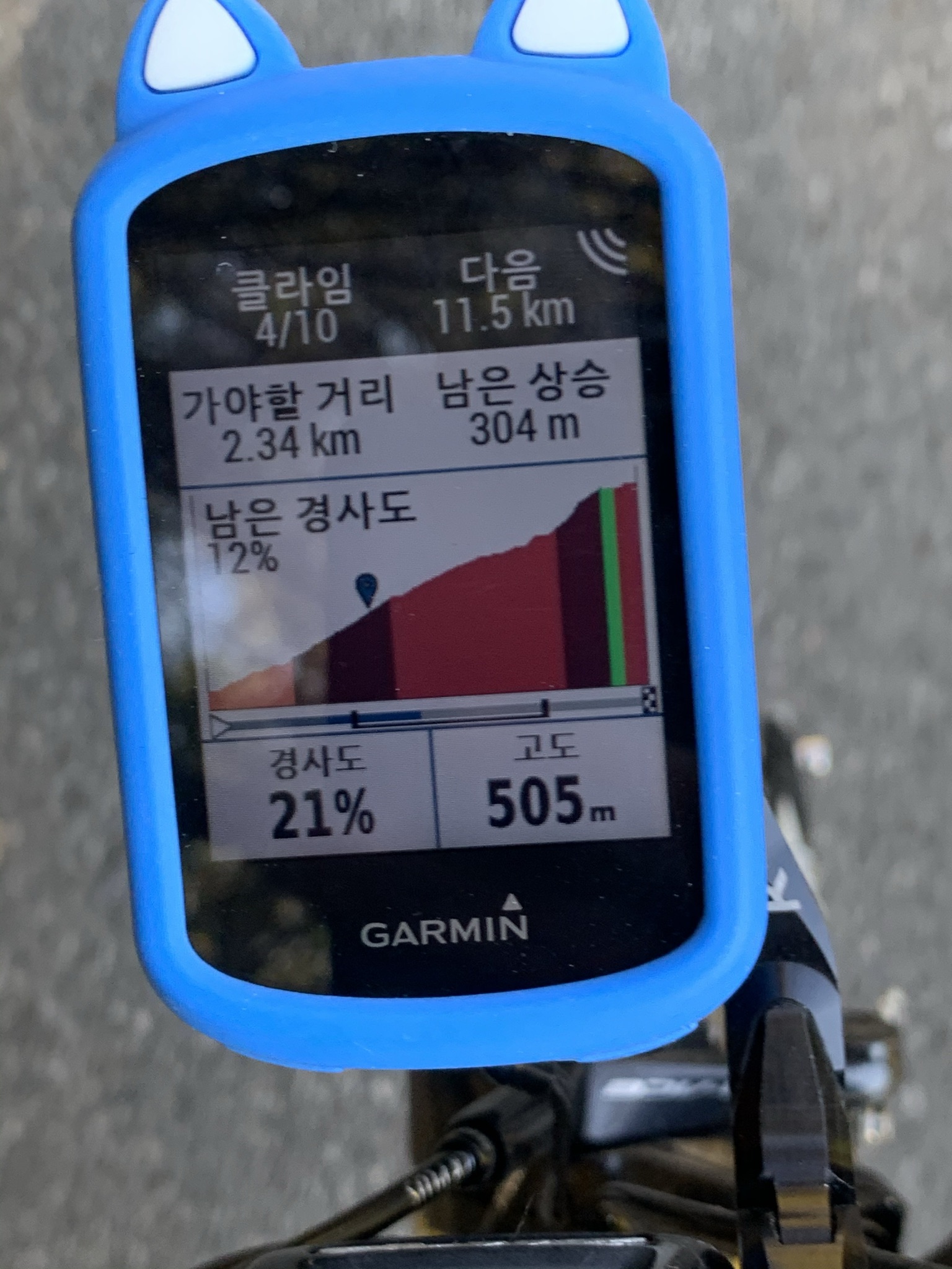 살짝 길긴 한데, 이 고개는 단양에서 오르면 11%경사가 쭉 이어져서 더 힘들었던 기억입니다.