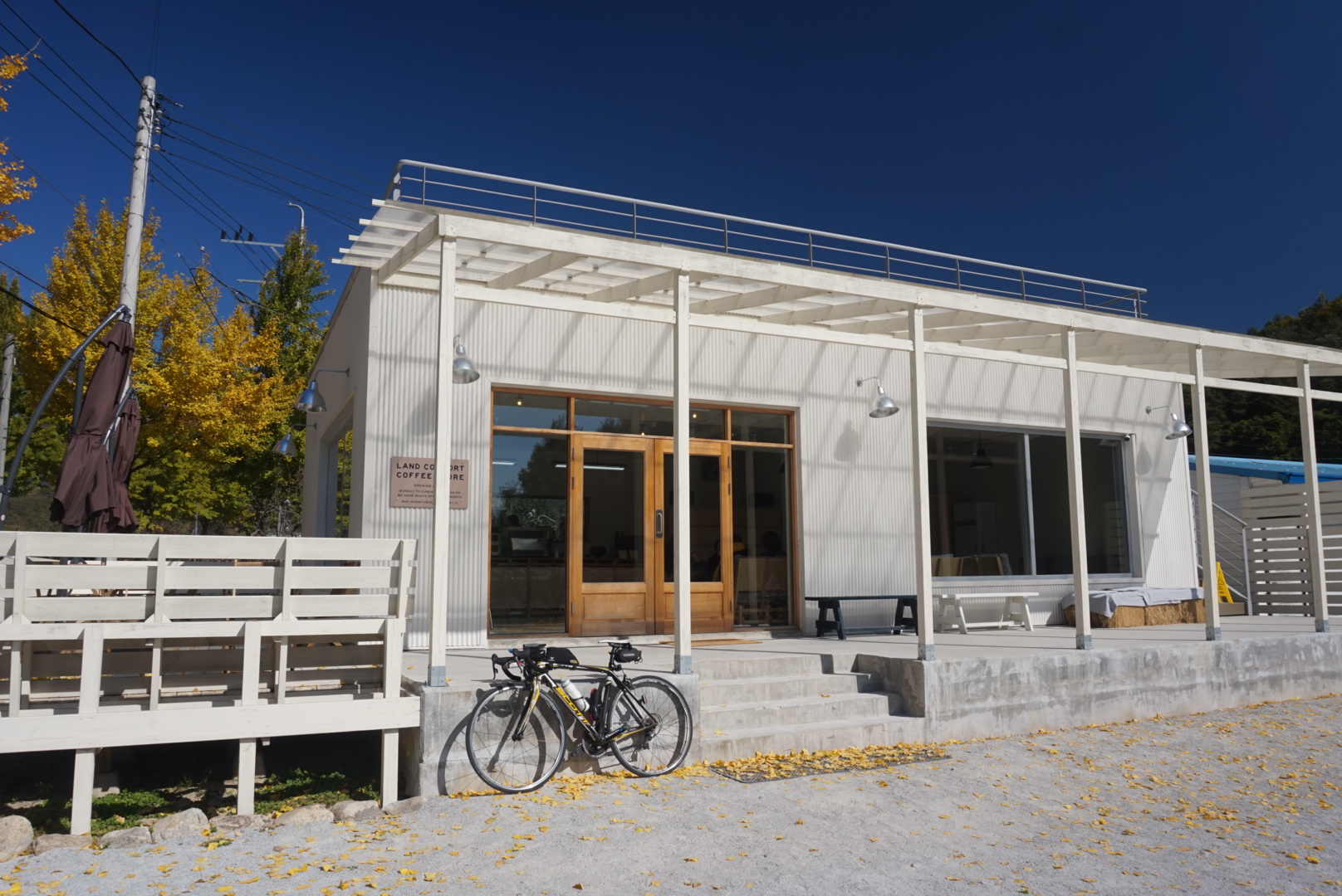 그렇게 은행나무와 하늘보며 힐링하고 달리는데, 부석사와 마구령 갈림길 바로 얼마 전의 길가에 뜬금 세련된 외관의 건물이 있네요?