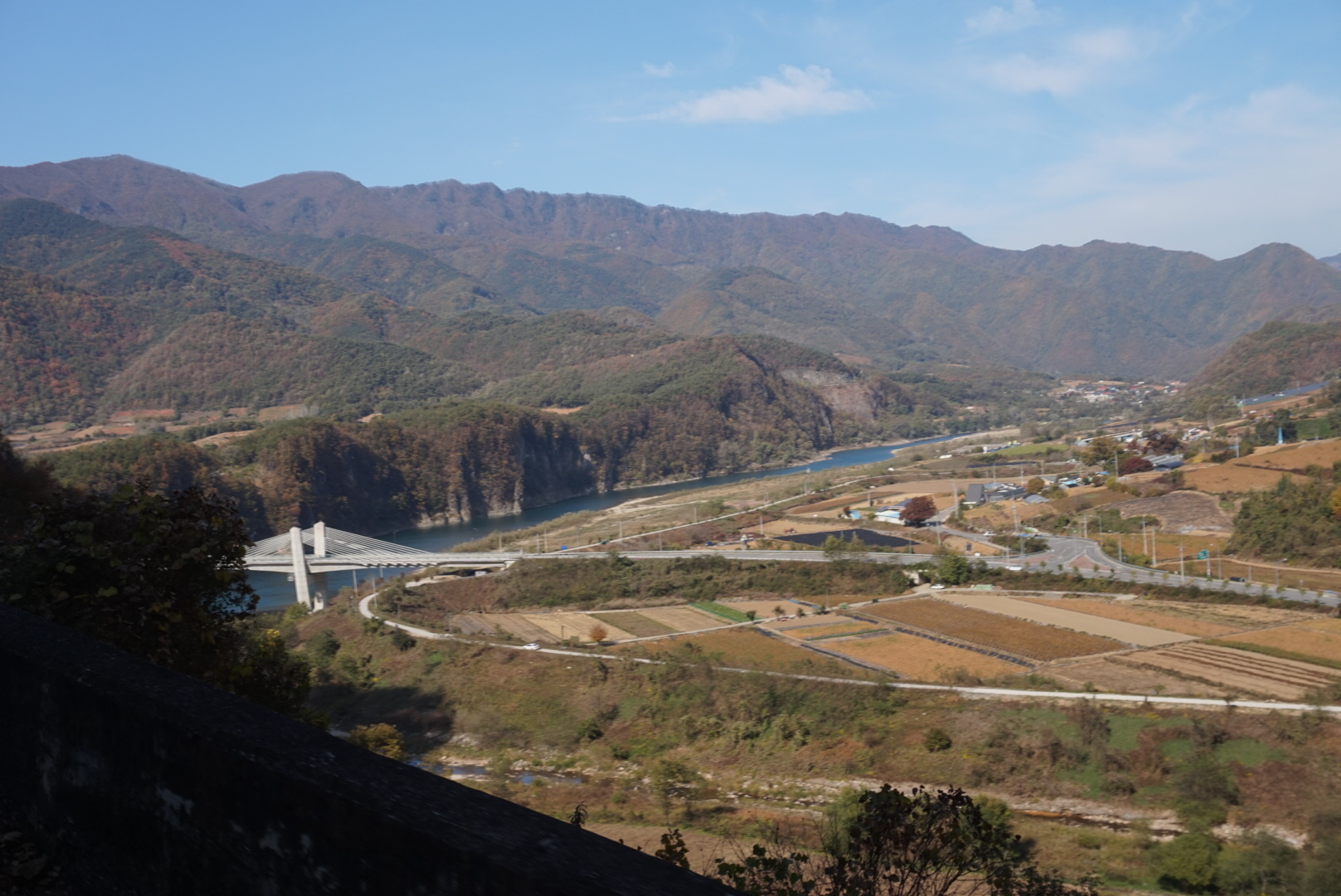 그 다음은 짧게 오르는 구간인데 남한강지류 풍경이 괜찮아서 또 한 컷