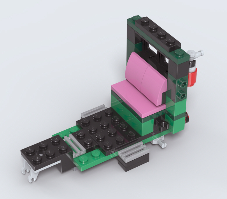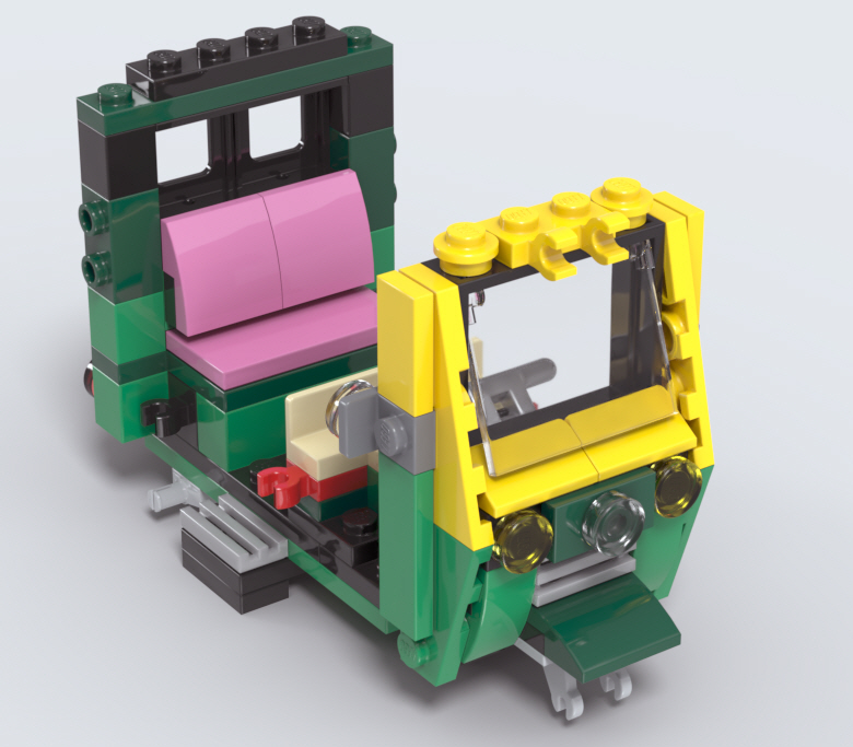 창문 브릭을 일부러 열어놓은 형태로 조립하여, 경사가 있는 앞유리창을 표현한 것이 재미있습니다.