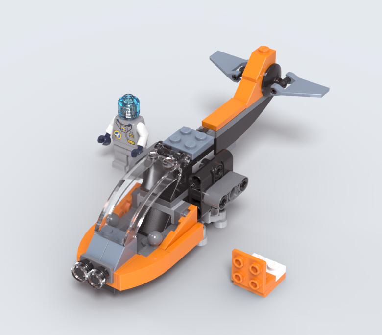 테크닉 브릭도 적절히 사용하면서 헬리콥터와 같은 몸통을 만듭니다.