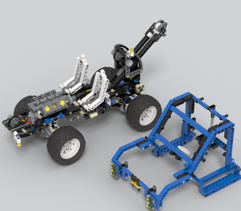 대신 차량 디자인은 1번 모델처럼, 주요 구동부와 조향장치가 다 달린 섀시부터 조립후,