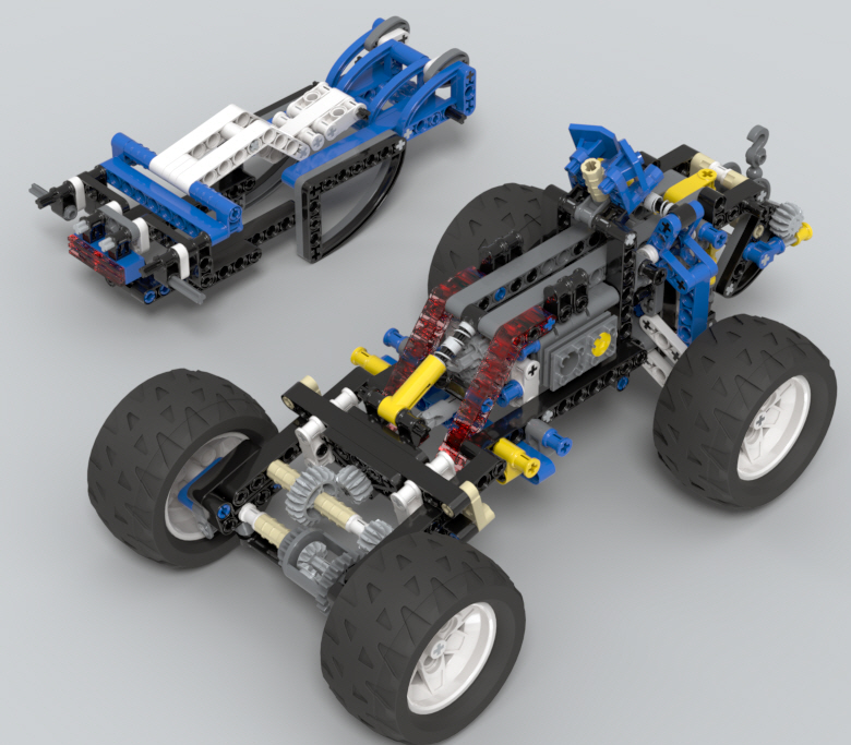 뒷바퀴와 연결된 엔진 피스톤 기믹은 1번 모델과 유사하고,