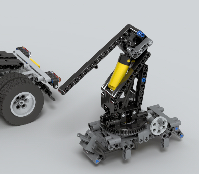 크레인 팔에는 2개의 공압 실린더가 들어가서 팔을 2단계로 움직일수 있습니다.