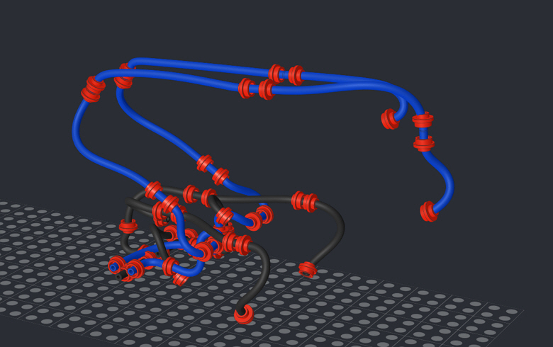 중앙으로 지나가는 공압 튜브들이 복잡하게 얽혀있습니다.