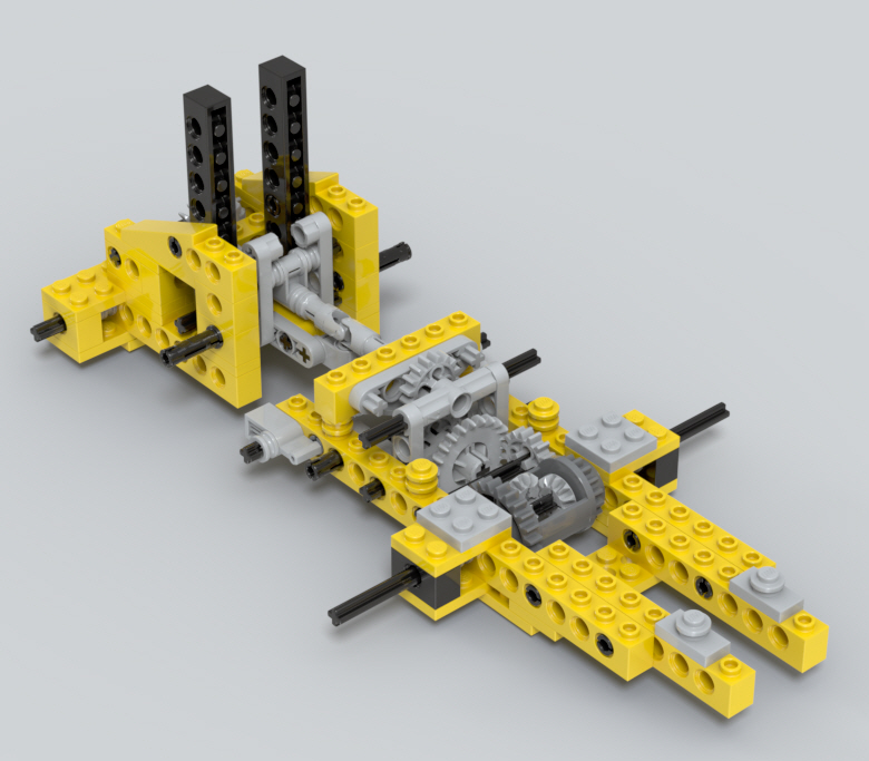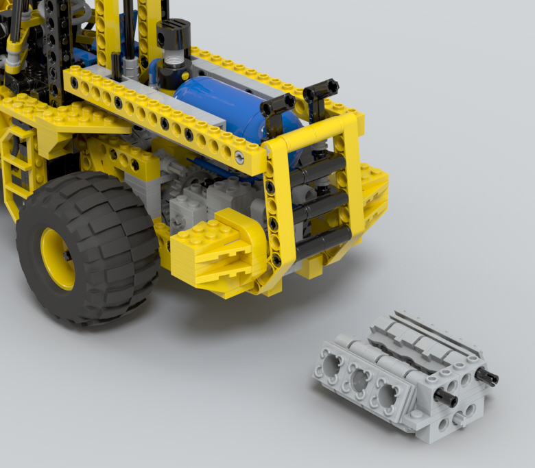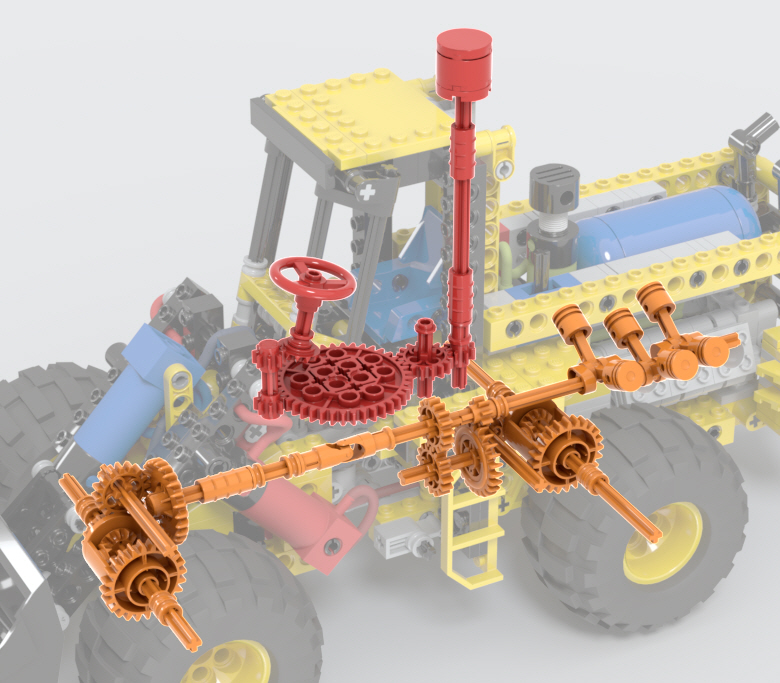 주황색은 앞뒤 구동축과 연결된 V6 엔진 피스톤 기믹,