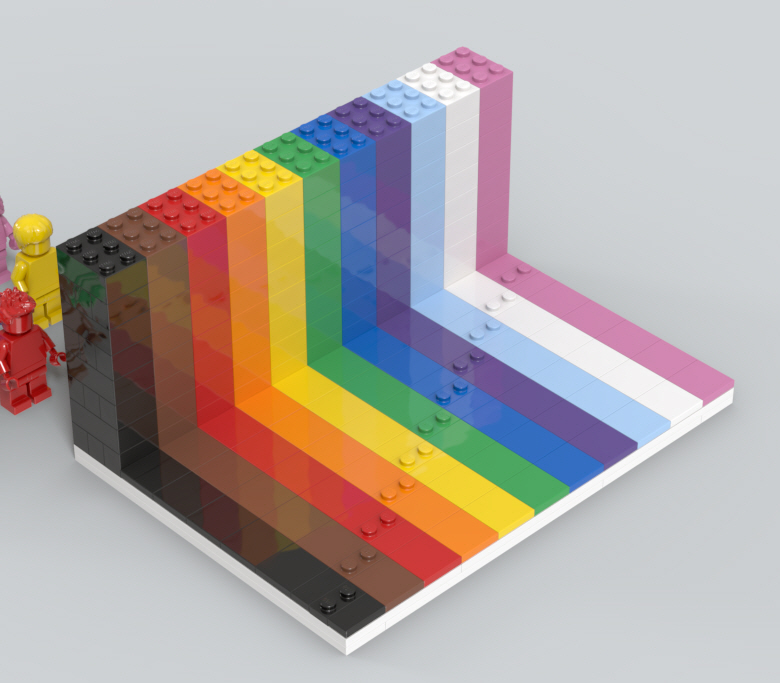 하얀색 밑판 위에, 미니피겨 색상과 동일한 배색의 브릭들을 쌓아올립니다.
