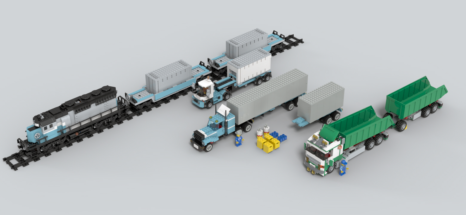 1개의 트럭, 2개의 길고 짧은 컨테이너+트레일러로 구성되어있습니다.