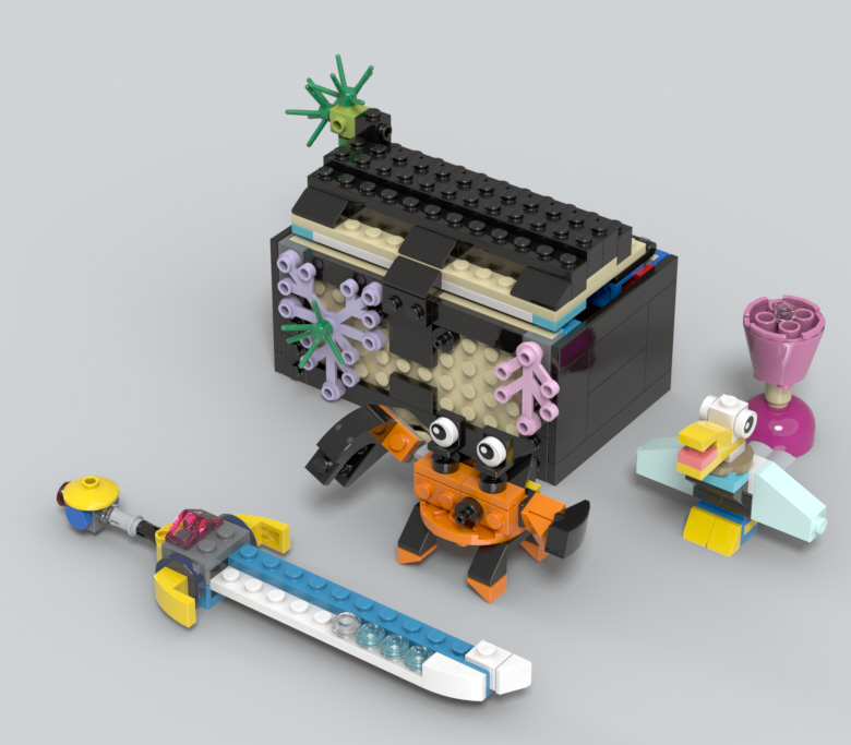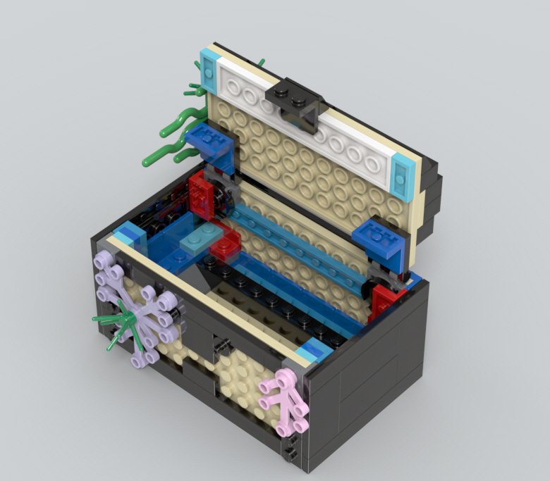 큼직한 플레이트 브릭과 타일 브릭을 최대한 활용하여 자그마한 보물상자를 만듭니다.