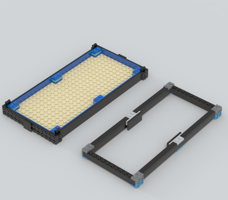 길다란 브릭들과 브라켓 브릭들을 사용하여 밑판과 위쪽 프레임을 만들었습니다.