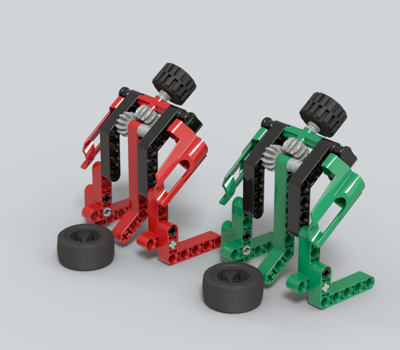 통 고무로 된 바퀴들과 기어로 작동하는 망치,