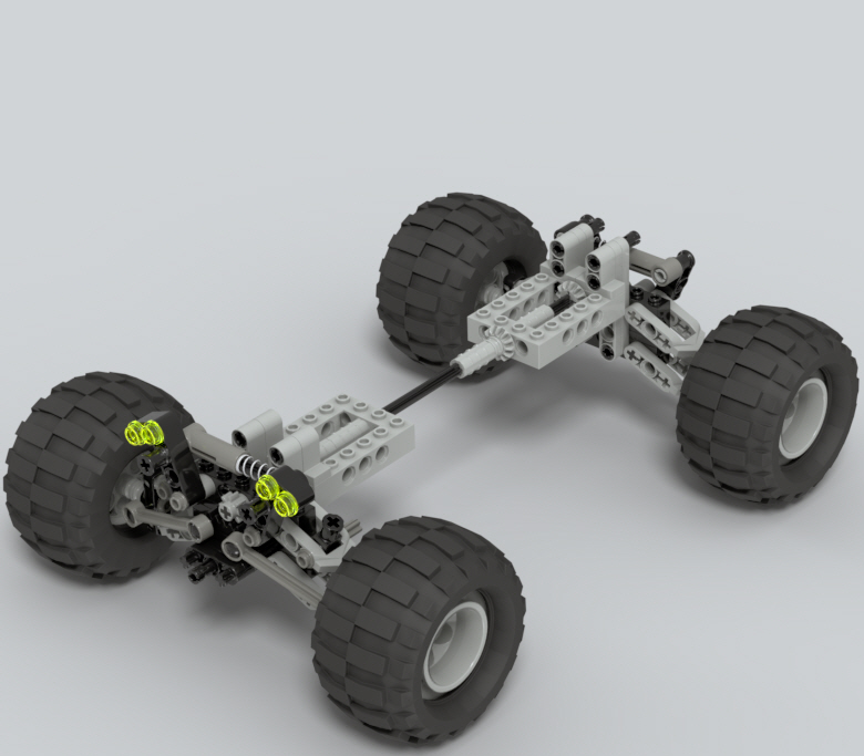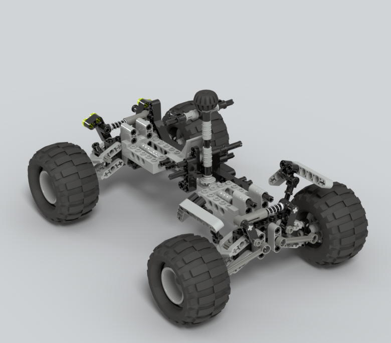 형광 녹색 단추 브릭이 있는 쪽이 앞쪽이고, 조향 장치가 들어가 있습니다.