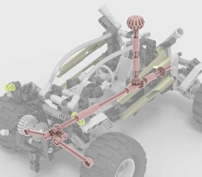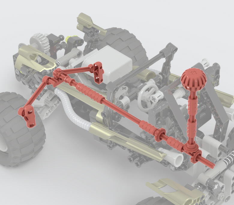 조향 장치를 위한 구동축은 뒤쪽까지 연결되어있습니다.