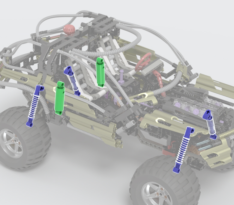 서스펜션 스프링들과 걸윙도어 개폐 기믹을 위한 댐퍼입니다.