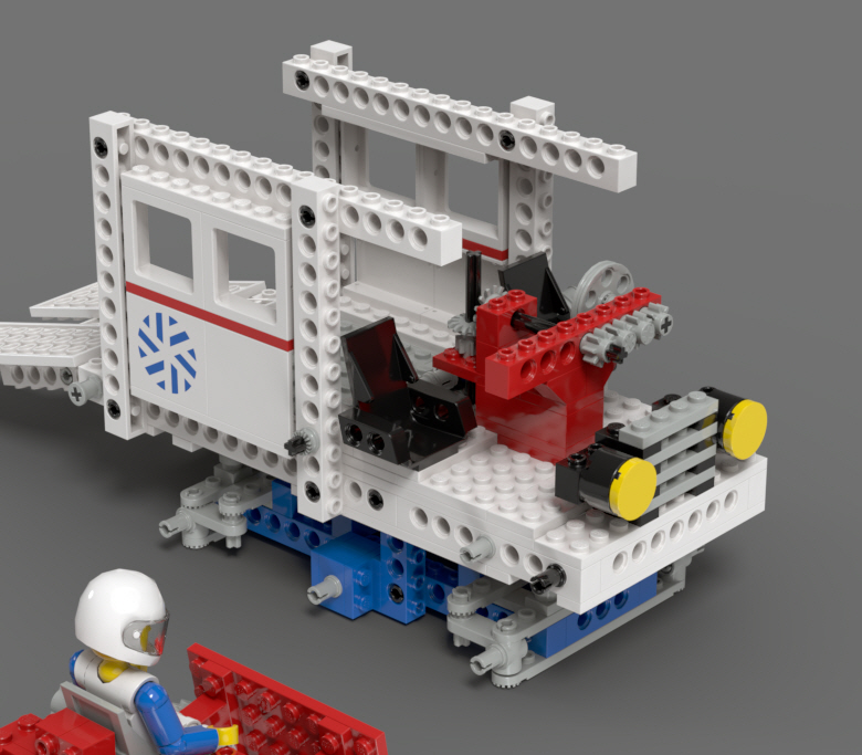 주요 기믹은 앞뒷바퀴 조향과 뒷부분의 발판겸 뒷문 조작.