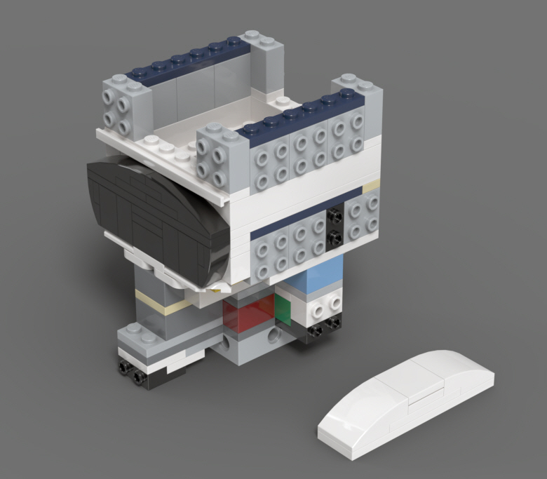 기본 틀을 잡고 나서, 스키 고글을 닮은 눈 보호 실드를 조립했습니다.