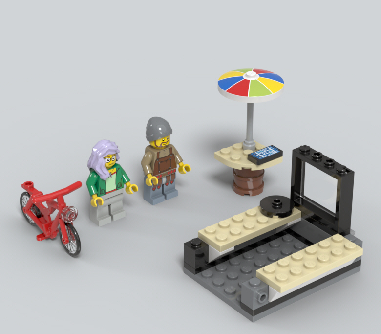 파라솔과 자전거, 미니피겨 2개를 조립하면서 시작합니다.