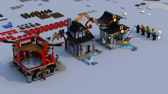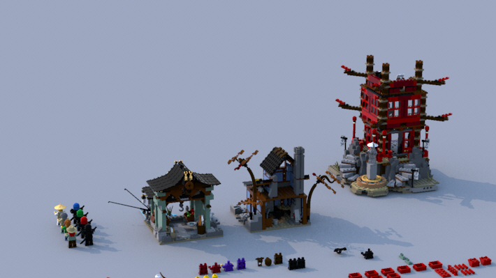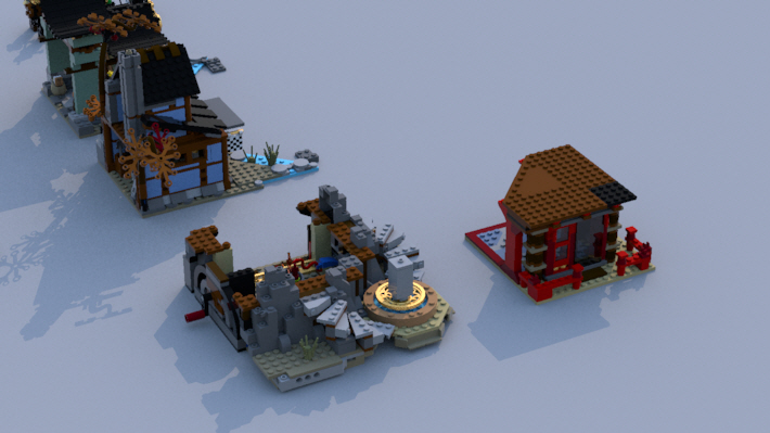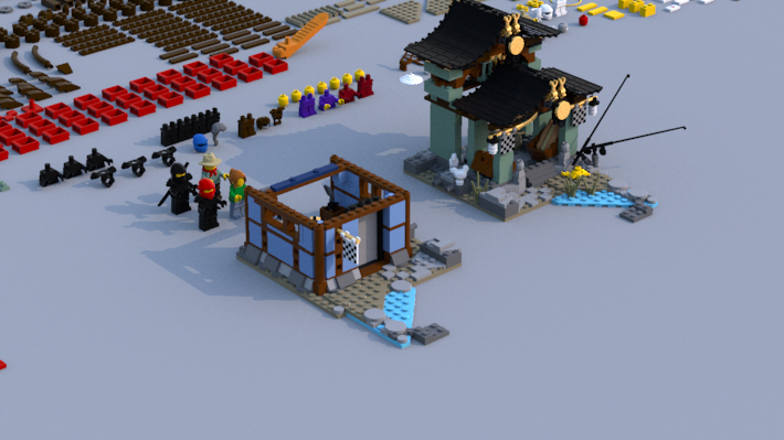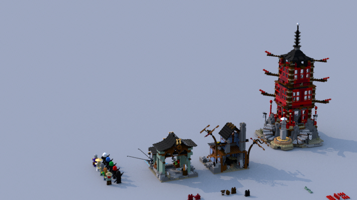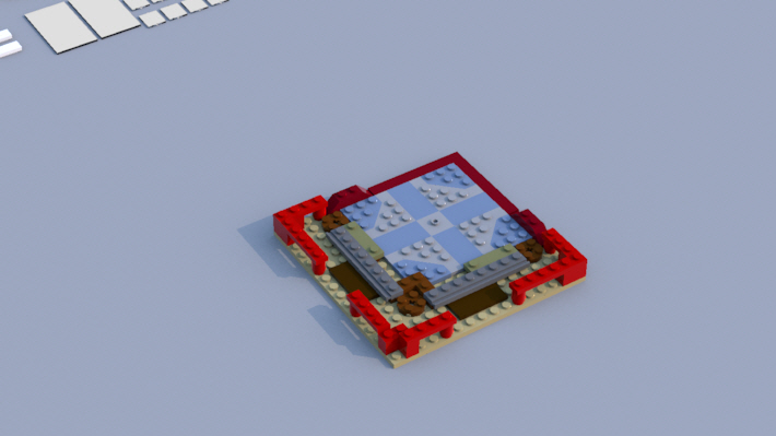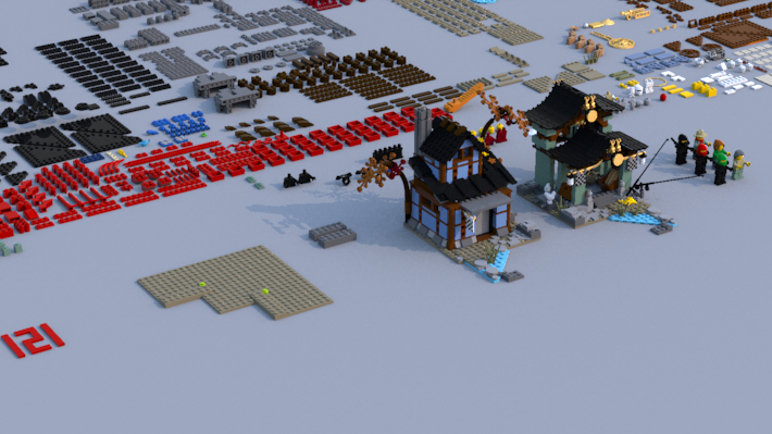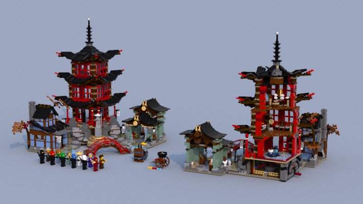 그리고 사원은 기와 브릭들로 이루어진 뭉치들을 테크닉 핀으로 연결했습니다.
