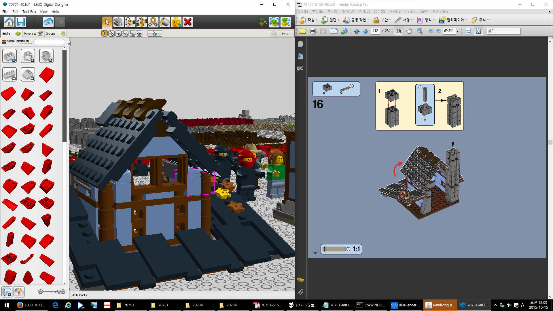 이번에는 2015년도 닌자고 계열 신상 제품인 에어짓주 사원을 모사해봤습니다.