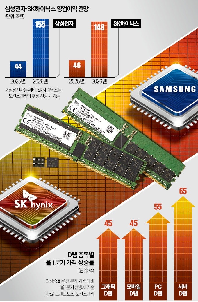 D램 '메가 호황'…삼성·SK 영업익 150조씩 거둔다-한국경제