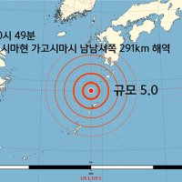 일본 가고시마현 가고시마시 남남서쪽 291km 해역 규모 5.0 지진
