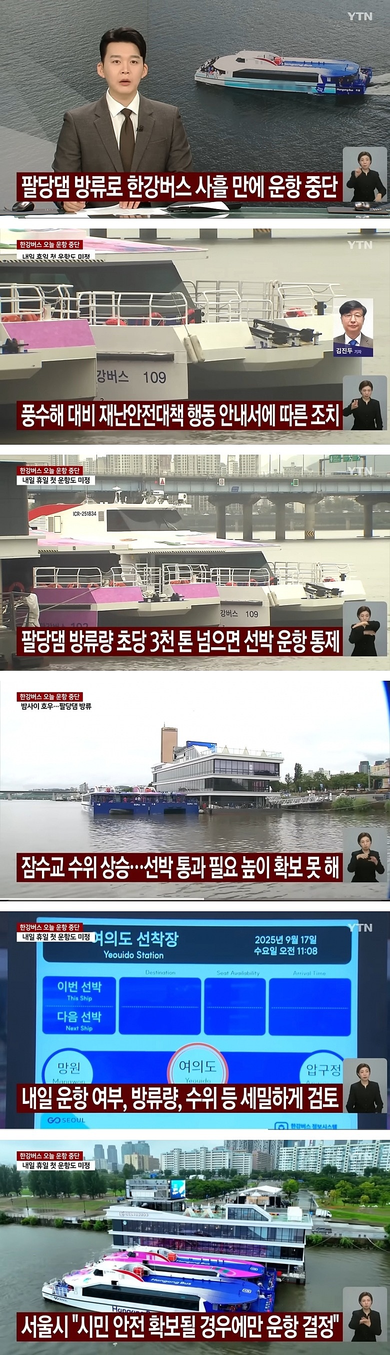 팔당댐 방류로 한강버스 사흘 만에 운항 중단