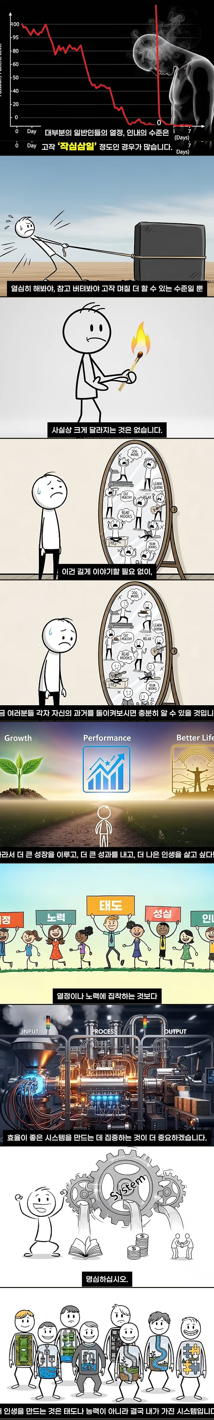 일반인들의 의지 수준은 고작 며칠 더 버티는 수준일 뿐, 실질적인 변화를 만들지 못한다.