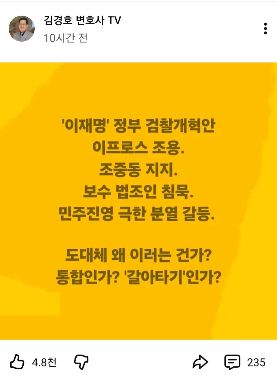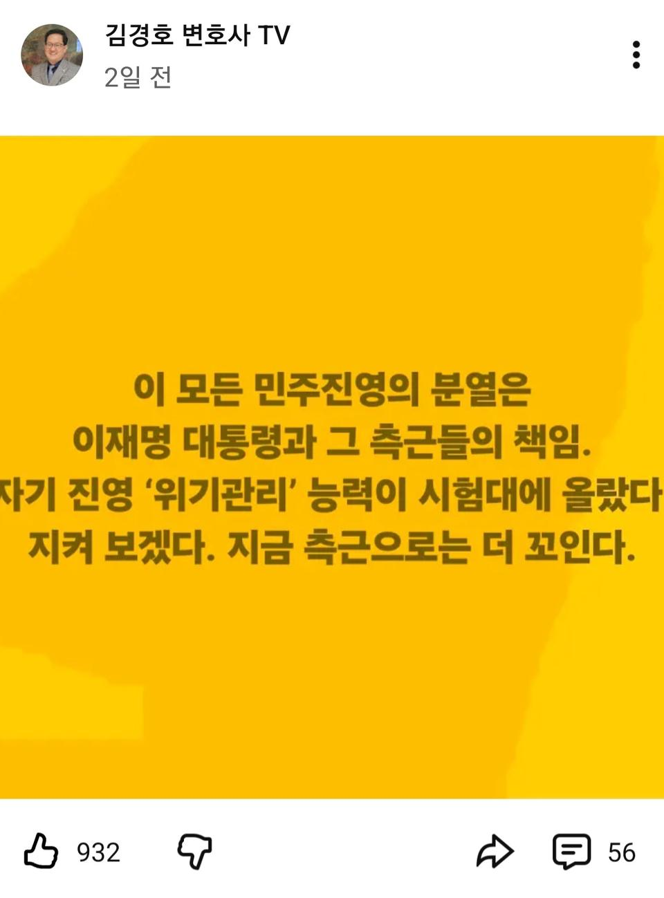 이분이 왜 찐명인지는 모르겠으나, 김경호 변호사도 자제할 필요가 있다고 봅니다