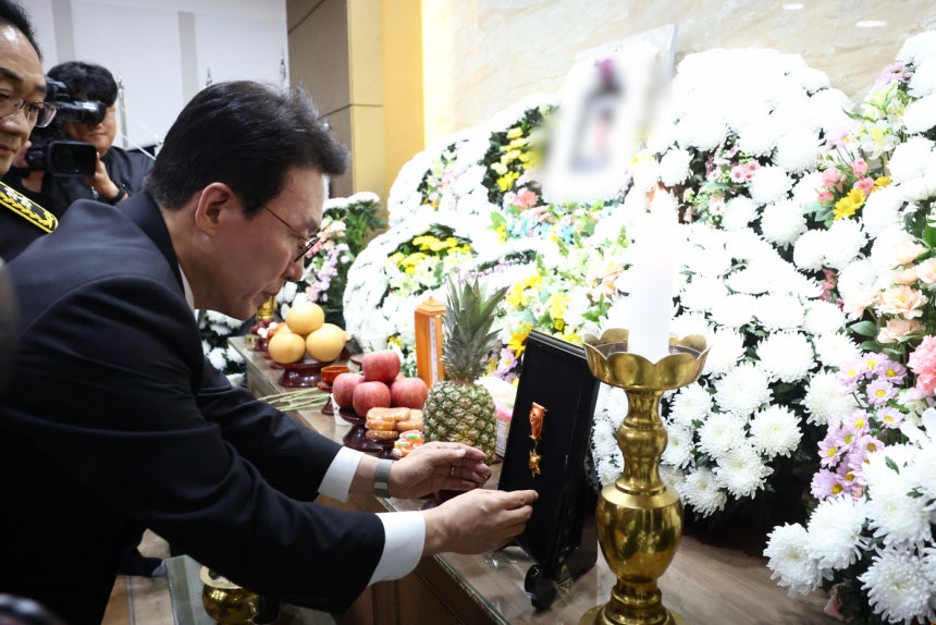김총리, 완도 화재 순직 소방관 훈장 추서…"예우 소홀함 없도록" | 뉴스1