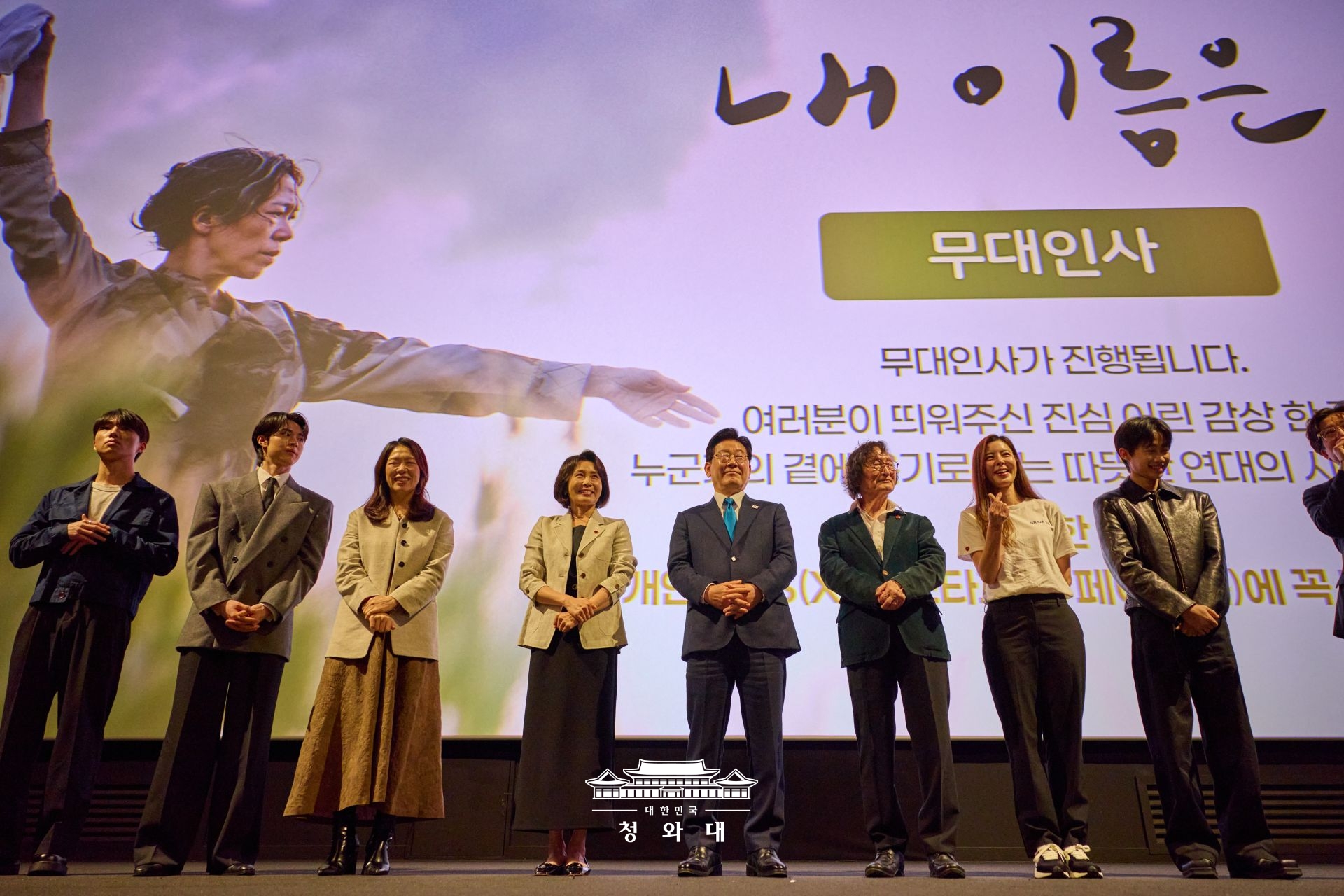 이 대통령은 이후 진행된 정지영 감독과 염혜란, 신우빈 등 주연 배우들의 무대인사를 경청하고 마지막엔 무대 앞으로 나아가 관객들의 환대에 감사를 표하며 영화에 대한 감상평과 함께 정치인이자 대통령으로서 해야 할 일이 많다고 말했습니다.