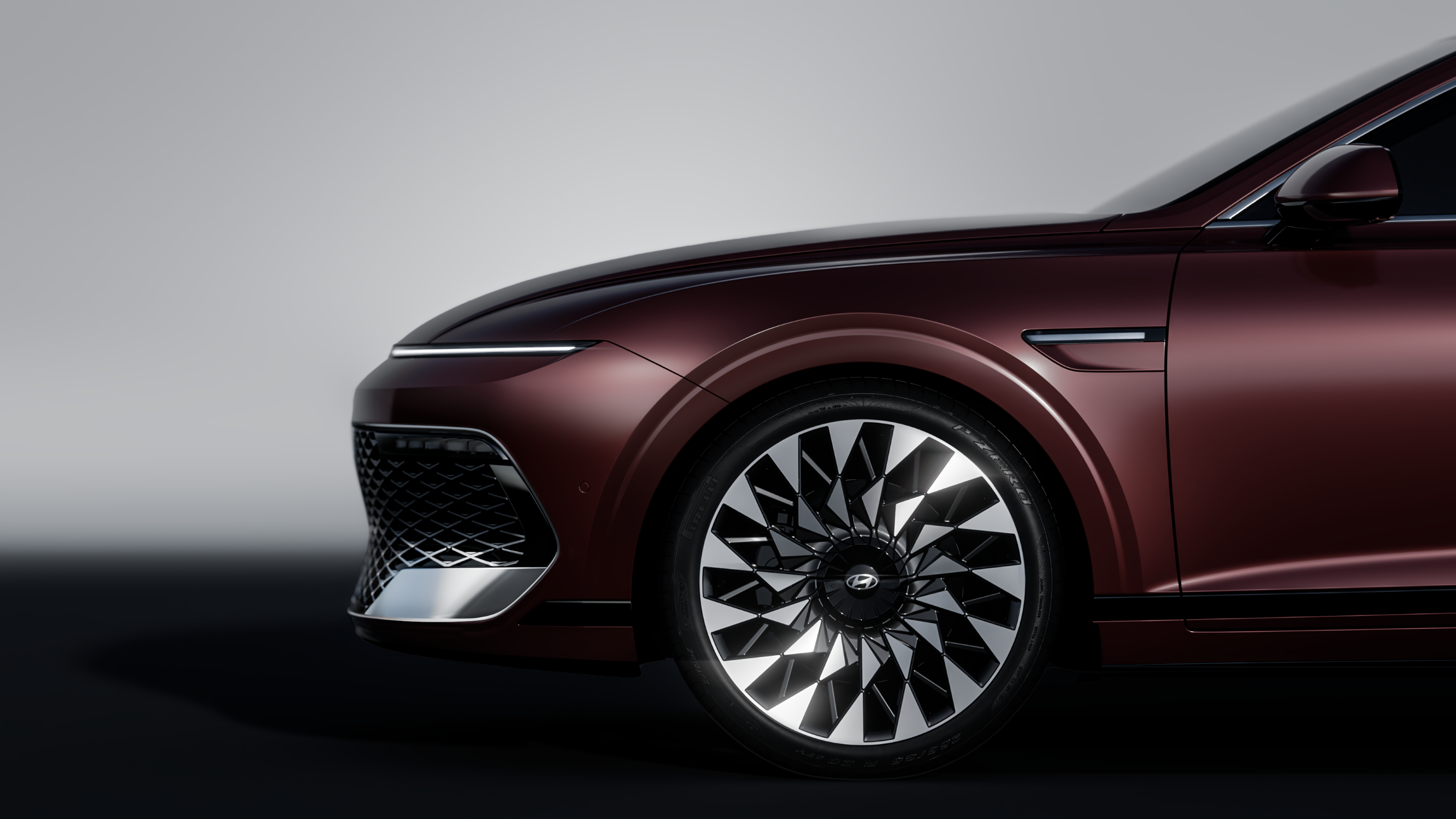 전면부는 길어진 후드와 함께 한층 강조된 ‘샤크 노즈(Shark Nose)’[1] 형상과 새로운 메쉬 패턴 콘셉트의 라디에이터 그릴을 적용해 보다 담대하고 고급스러운 이미지를 완성했다. [1: 마치 상어의 코를 연상시키는 디자인 요소]