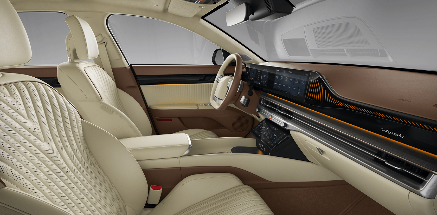 현대차는 더 뉴 그랜저의 실내 공간을 기존 그랜저의 ‘프리미엄 라운지’ 콘셉트를 계승하면서, 넓은 공간감과 혁신적인 사용 경험을 가미한 한 차원 진보한 프리미엄 공간으로 새롭게 구성했다.