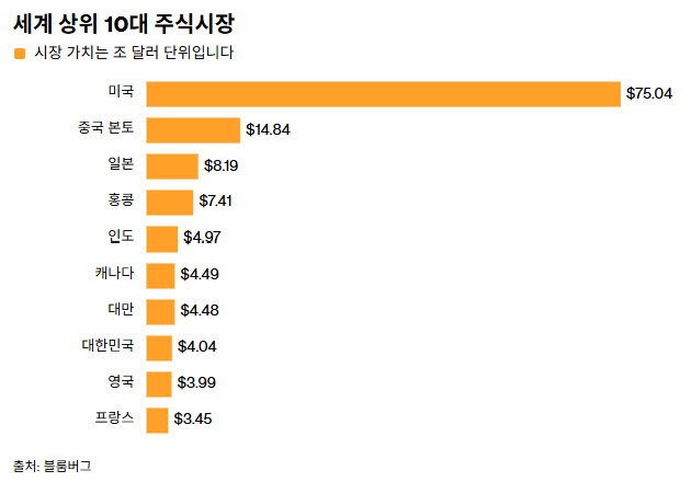 이뿐 아니라 5위 인도부터 8위 한국이 모두 시총이 4조달러대여서 한국 증시의 시총 5위 도약도 가능해 보인다.