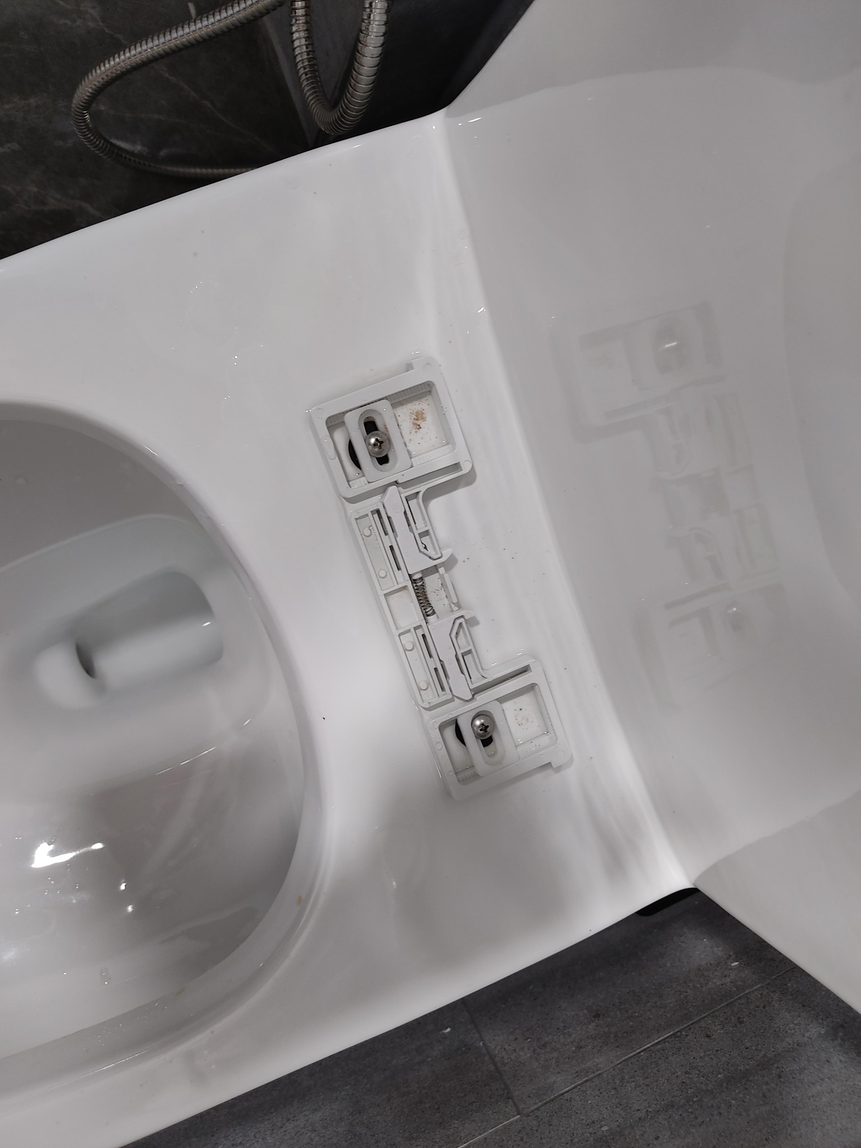 비데속 부품으로 장착하고 비데를 밀어 넣으면 딸깍 하고 장착됩니다.
